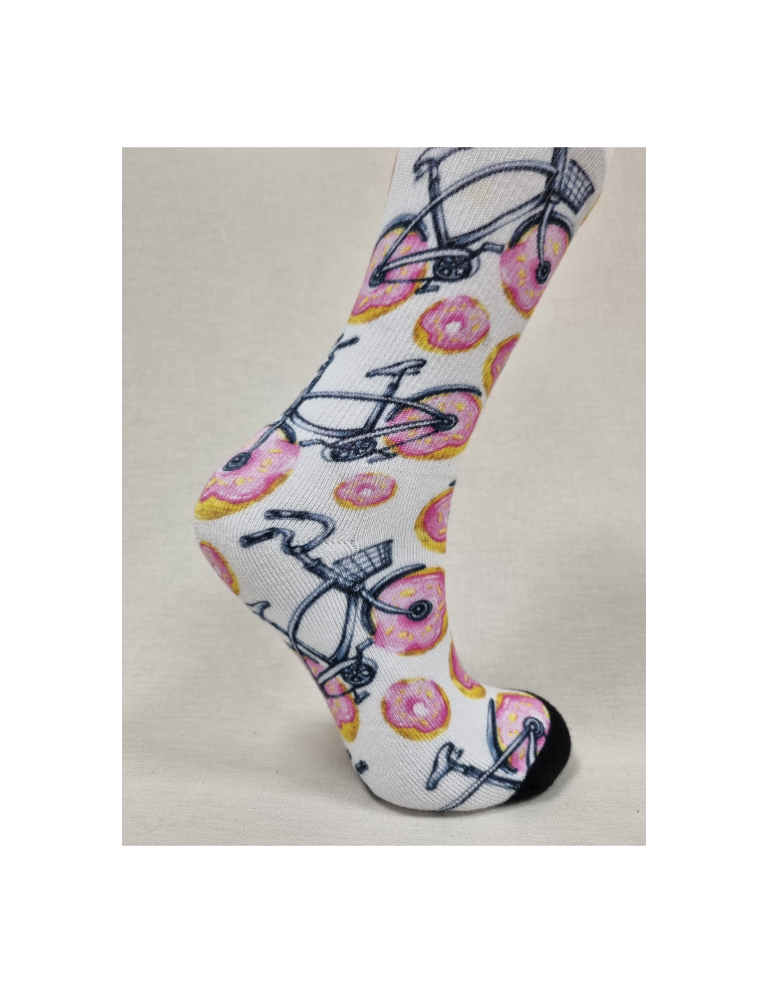 Calcetines originales con un divertido diseño de bicicletas cuyas ruedas son deliciosos donuts. Perfectos para quienes buscan estilo únio y creativo en cada paso, cálidos y cómodos, idelaes para destacar minestras disfrutas del máximo confort.